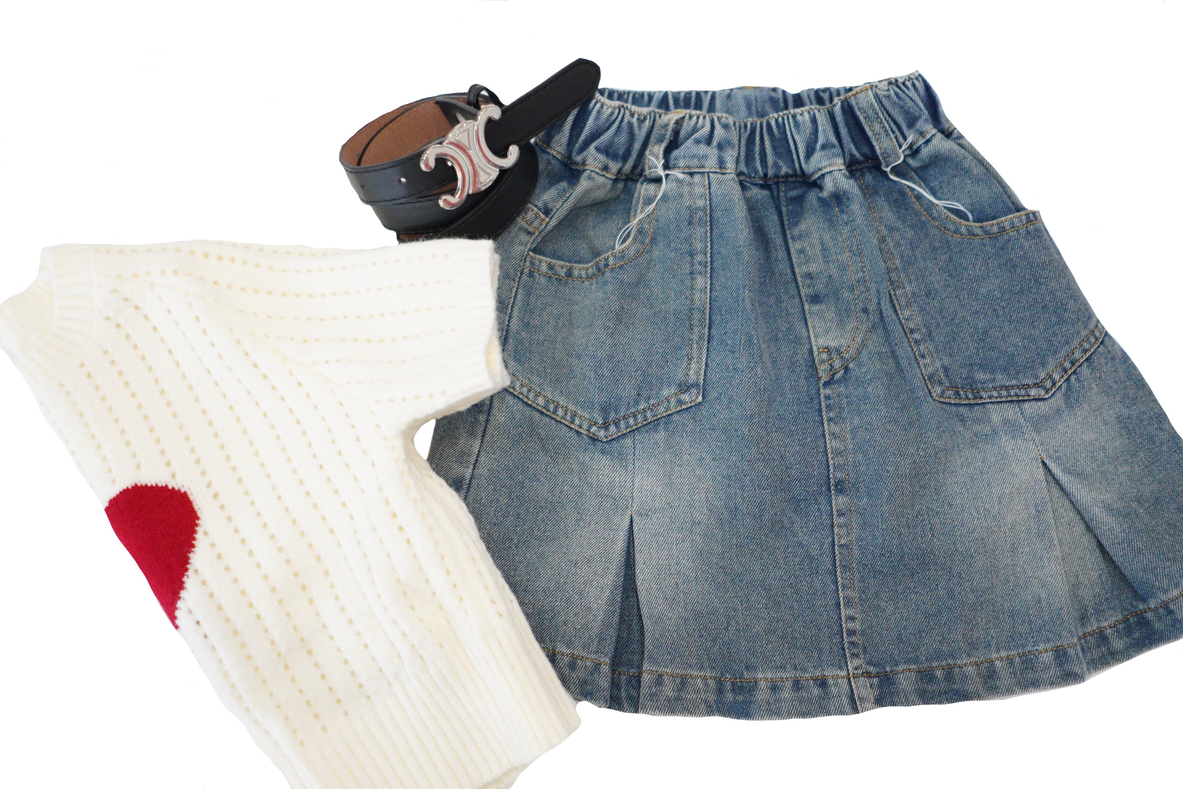 ハートニットTシャツセットアップ(ベルト付き)